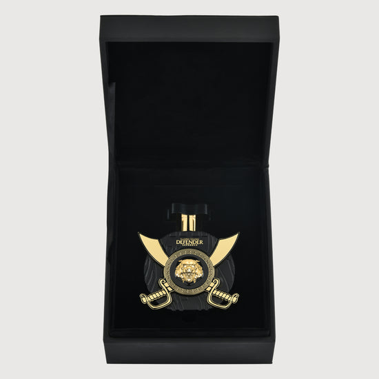 The Defender - a fougere that brings together cardamom, bergamot & violet leaf at the top. A perfect mix of spicy & fresh notes at the heart i.e. cinnamon & lily of the valley in perfect harmony, to create an accord that would change the landscape of masculine perfumery forever. The mesmerizing notes of leather, sandalwood, vanilla & Tonka beans dry down at the base. All these scents fuse and create a solid & thoroughly modern Fougere that would never go out of style.