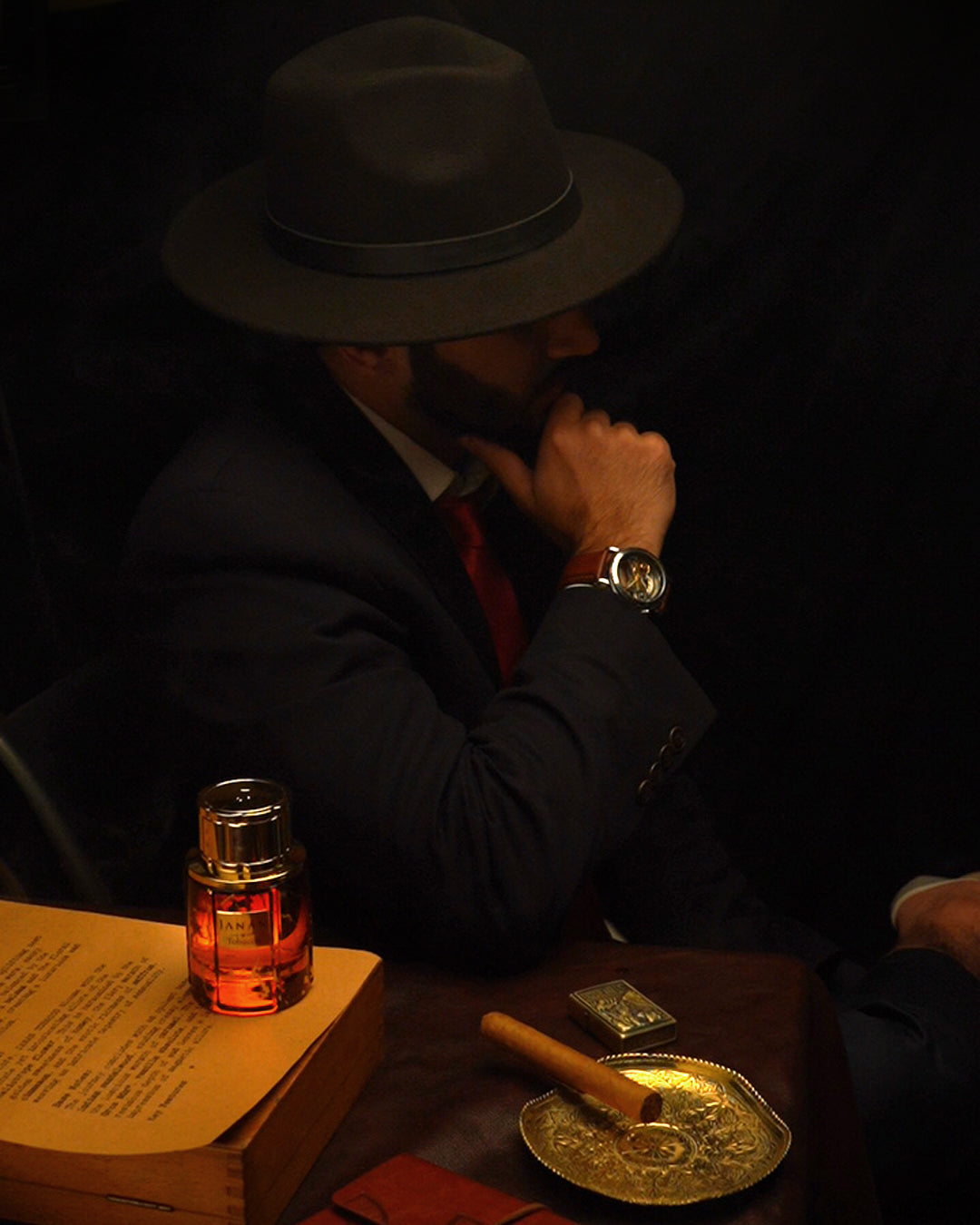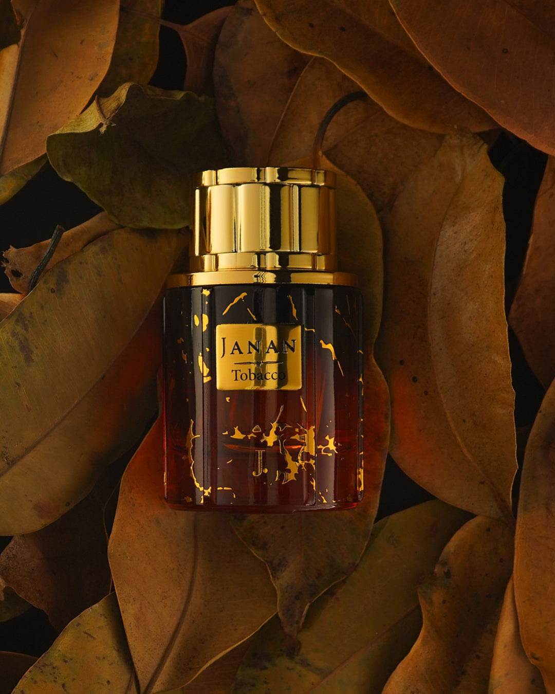 J. Fragrances presents Janan Tobacco, a scent crafted for those who exude confidence and timeless charm. This warm and inviting fragrance begins with the fresh citrusy spark of bergamot, complemented by the rich aroma of tobacco and the soft floral touch of rose essence. At its heart, the blend of heliotrope, honey, cinnamon, and saffron creates a sweet and spicy allure. The base notes have a luxurious finish with creamy sandalwood, vanilla, and the smoky depth of oud, leaving a lasting impression of sophistication and elegance. Janan Tobacco is the perfect choice for those who seek to captivate with their unique and refined style.